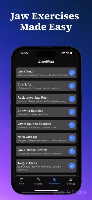 JawMax - это возможность исправить форму челюсти без хирургического вмешательства и инъекций. Встроенный в утилиту искусственный интеллект за секунды оценивает лицо пользователя с помощью передовой технологии кадрирования и дает рекомендации по улучшению челюсти, основываясь на анализе структуры и симметрии. Это могут быть упражнения на сопротивление, сжатие челюсти, подъем подбородка и улучшение осанки, а также йога для лица и общие рекомендации по уходу за кожей. Доступ ко всем этим функциям открывает мод на Premium.