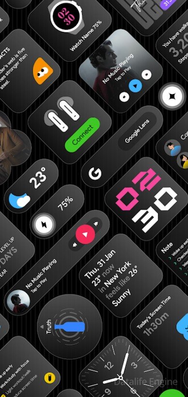 В состав пакета входят виджеты чего угодно, например, часов, детализированного прогноза погоды, календаря со списком ближайших событий, а также системные приложения, отображающие уровень заряда аккумулятора и состояние оперативной памяти в реальном времени и многое другое. Всего десятки вариантов с сотнями видов дизайна. В целом можно настроить облик и размер под себя. Например, выбрать стиль рамки и фона, степень прозрачности, цвет, шрифты и отображаемую информацию и многое другое. То есть персонализация на высшем уровне.